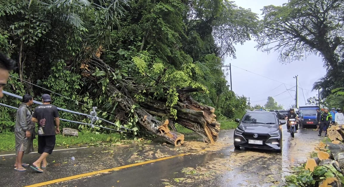 Pohon Besar Tumbang di Desa Jati, Jalan Lintas Lahat – Pagaralam, Lalin Sudah Kembali Normal